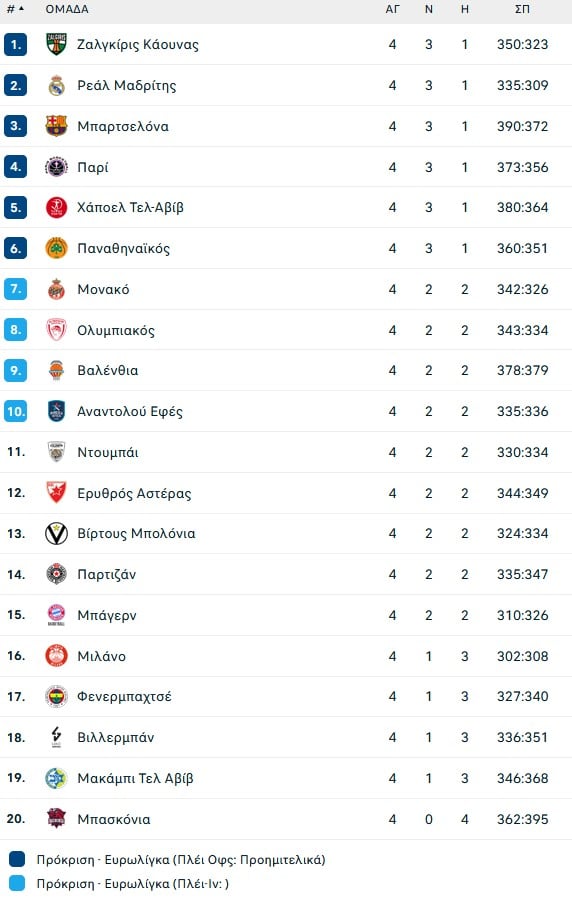 22:00 Μακάμπι Τελ Αβίβ – Ολυμπιακός (στο Βελιγράδι)