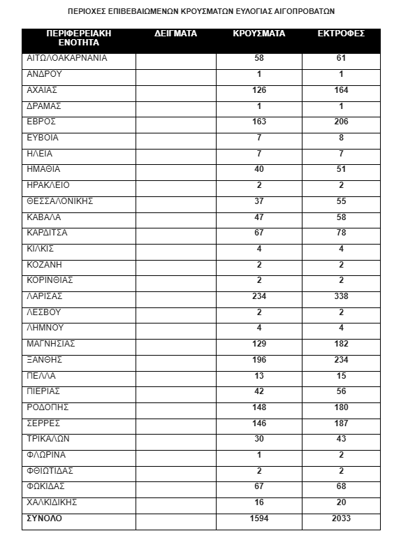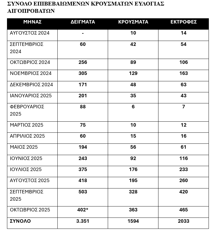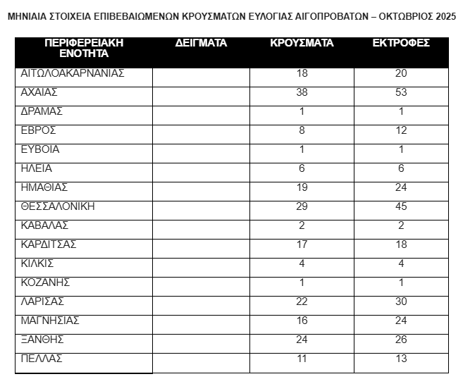 Σημειώνεται ότι από την έναρξη της ζωονόσου στις 20 Αυγούστου 2024 μέχρι σήμερα και σε εφαρμογή του ευρωπαϊκού Κανονισμού 687/2020 για εφαρμογή των μέτρων βιοασφάλειας, έχουν θανατωθεί 403.925 αιγοπρόβατα.