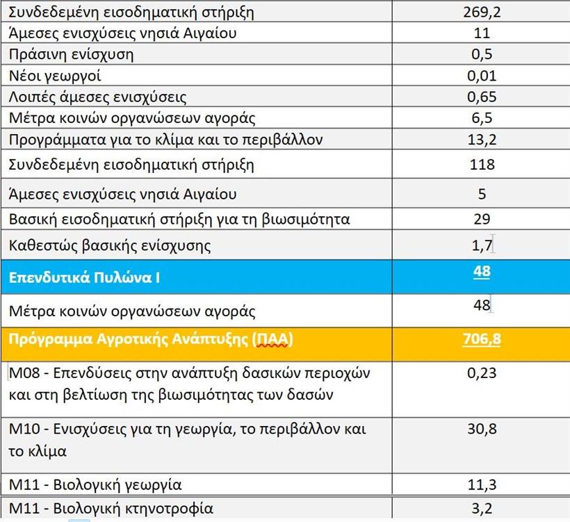 Τα στοιχεία με την κρατική ενίσχυση, ανά κωδικό, όπως κοινοποιήθηκαν, έχουν ως εξής:
