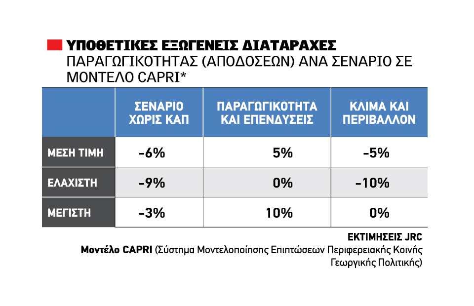 Η έκθεση παρουσιάζει δύο εναλλακτικά σενάρια που βασίζονται σε ξεχωριστές κατανοµές χρηµατοδότησης της ΚΑΠ: