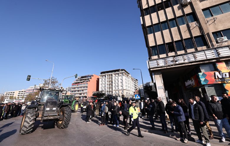Ένα τέταρτο αργότερα κατέφθασε αντίστοιχος αριθμός τρακτέρ από τα «Πράσινα Φανάρια», στην οδό Κουντουριώτου, και παρατάχθηκαν δεξιά και αριστερά στον δρόμο, σύμφωνα με τις υποδείξεις της Τροχαίας.