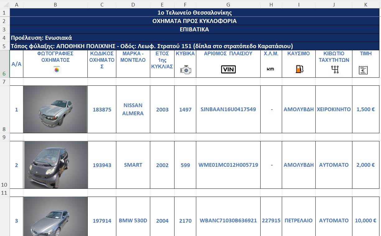 Δημοπρασίες οχημάτων με φωτογραφίες και αναγραφή διανυθέντων χιλιομέτρων