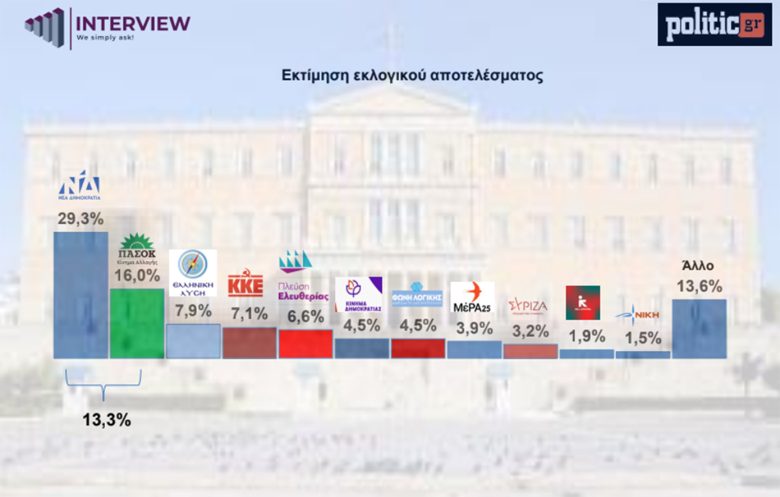 Δημοσκόπηση Interview: Τι απαντούν οι πολίτες στο δίλημμα «Μητσοτάκης ή χάος» – Διατηρεί το προβάδισμα η ΝΔ