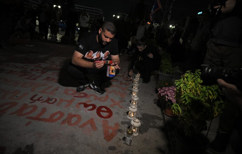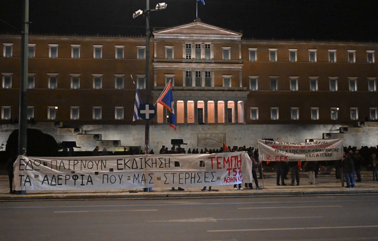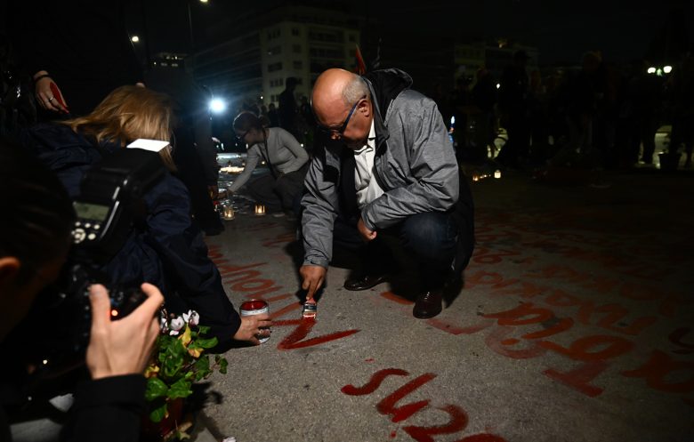 Διαμαρτυρία στο Σύνταγμα για τα Τέμπη: Συγγενείς θυμάτων έγραψαν ξανά τα ονόματα μπροστά από τη Βουλή