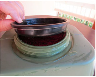 Με την ολοκλήρωση της ζύμωσης, προσθέτουμε προοδευτικά αλάτι στην επιφάνεια των δοχείων με κριτήριο τη γεύση και λίγο ξύδι, αν δεν είναι πολύ όξινη.