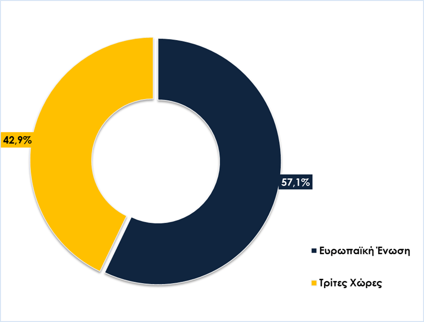 Γράφημα 2. Ποσόστωση εξαγωγών σε χώρες της ΕΕ και Τρίτες Χώρες, Ιανουάριος – Δεκέμβριος 2024/2025