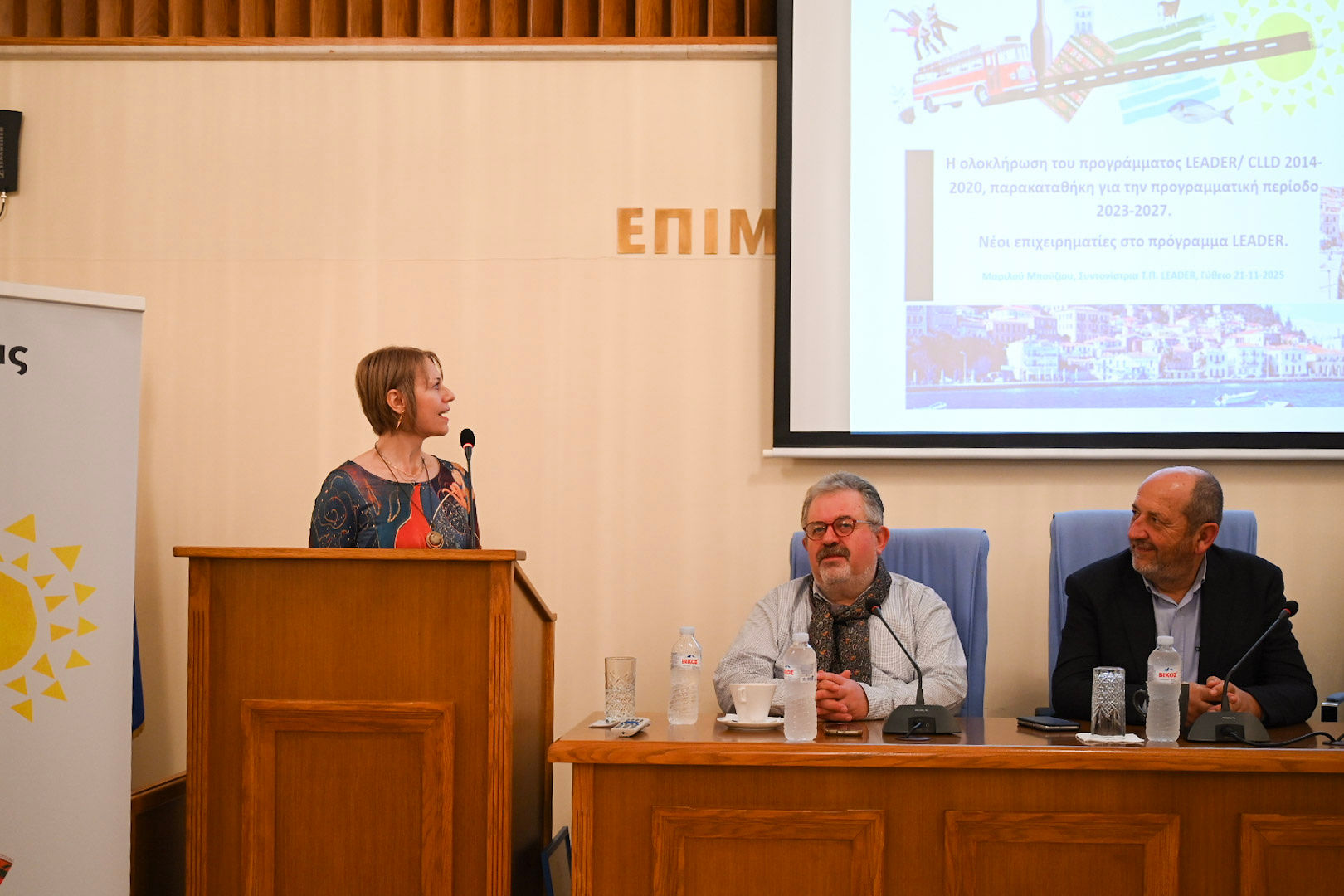 Στο επιμελητήριο Λακωνίας στο Γύθειο παρουσιάστηκαν τα αποτελέσματα του τοπικού προγράμματος LEADER/CCLD 2014-2020, στα πλαίσια του οποίου υλοποιήθηκαν 240 έργα, με συνολική δημόσια δαπάνη που ξεπέρασε τα 21,4 εκατ. ευρώ, ενώ αν ληφθεί υπόψιν και η ιδία συμμετοχή ο συνολικός προϋπολογισμός αγγίζει τα 40 εκατ. ευρώ.