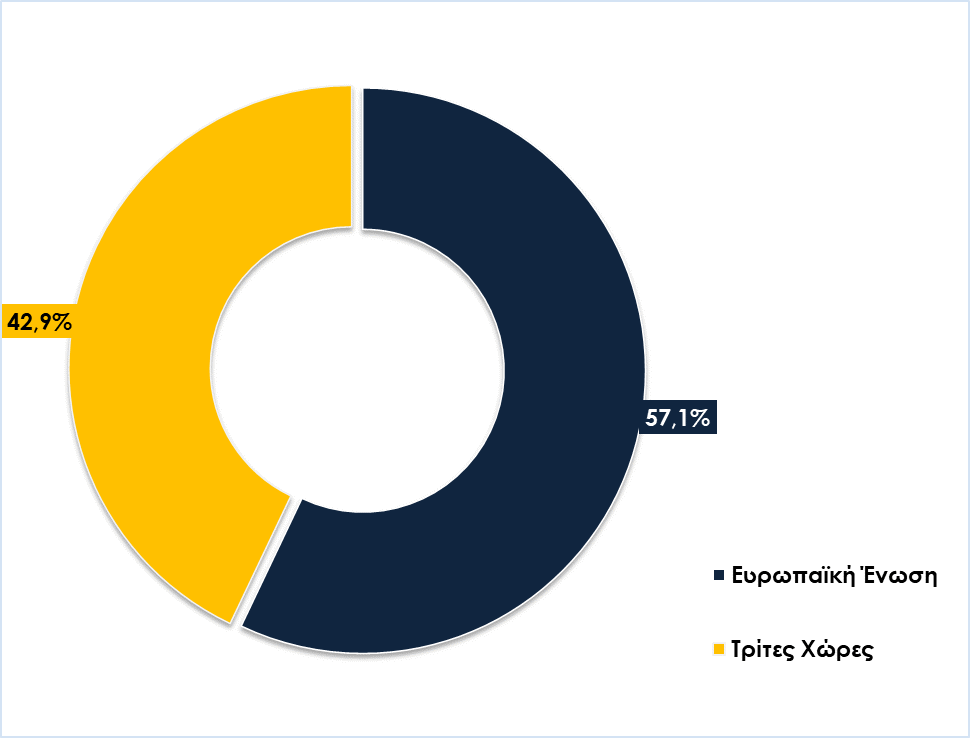 Γράφημα 2. Ποσόστωση εξαγωγών σε χώρες της ΕΕ και Τρίτες Χώρες, Ιανουάριος – Οκτώβριος 2024/2025