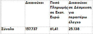 Στα ποσά αυτά, δεν περιλαμβάνονται οι αιτήσεις των υποψηφίων δικαιούχων που ελέγχονται από τη Διεύθυνση Αντιμετώπισης Οργανωμένου Εγκλήματος.