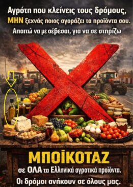 Σε όσους λοιπόν προσπαθούν να ξεγελάσουν τους αγρότες με λίγο καρότο, αλλά και να τους τρομάξουν επισείοντας το μαστίγιο, σε όσους προσπαθούν να ξεσηκώσουν την υπόλοιπη κοινωνία εναντίον τους ακόμη και να μην αγοράζει ελληνικά αγροτικά προιόντα αλλά να προτιμά τα εισαγόμενα,
