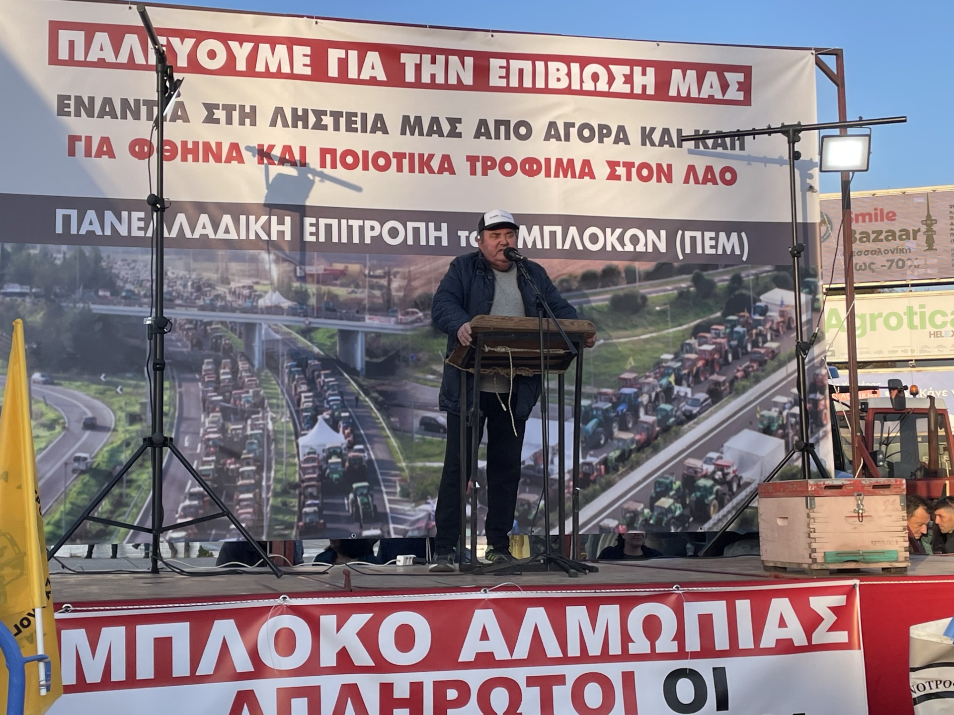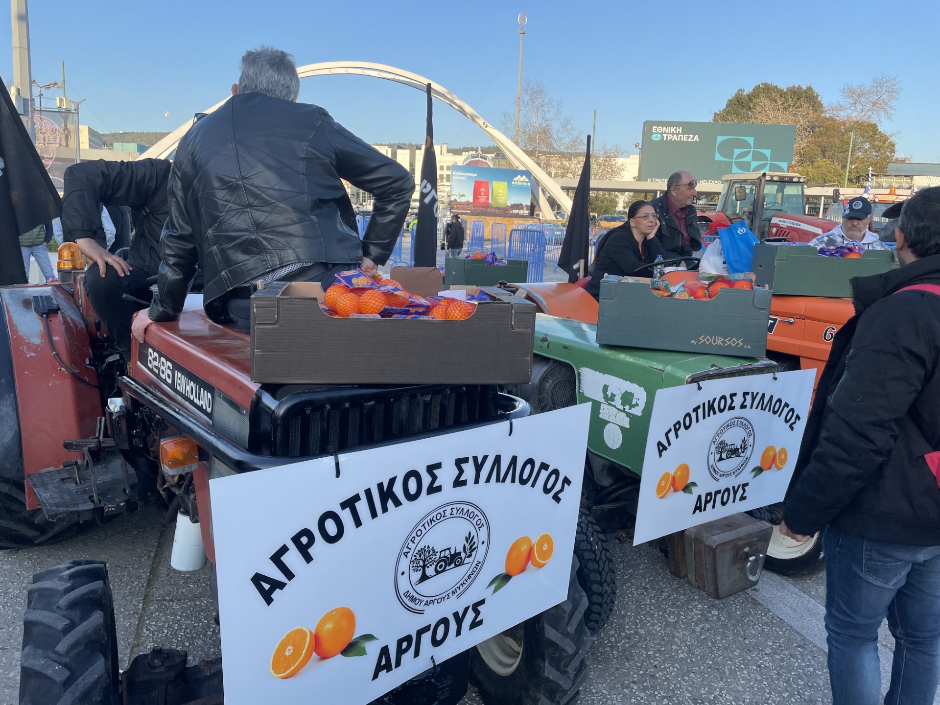 Συνολικά 50 τρακτέρ είναι συγκεντρωμένα στη νότια πύλη της ΧΑΝ, με τα πρώτα τρακτέρ να καταφθάνουν από το Λαγκαδά περίπου στις 16:00. Αργότερα ακολούθησε και ένα κομβόι από τη Δυτική Θεσσαλονίκη, από περιοχές όπως Μάλγαρα, Κουφάλια και Χαλκηδόνα. Το ταξίδι για τη Θεσσαλονίκη έκαναν και 3 τρακτέρ από το Άργος, φορτωμένα με πορτοκάλια τα οποία μοίρασαν στον κόσμο.