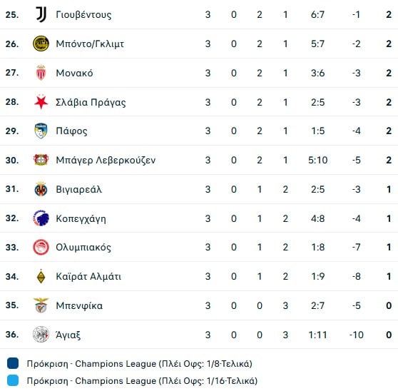 Θέσεις 1-8, απευθείας πρόκριση στους «16»