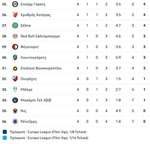Η βαθμολογίαΘέσεις 1-8: Απευθείας πρόκριση στους «16»