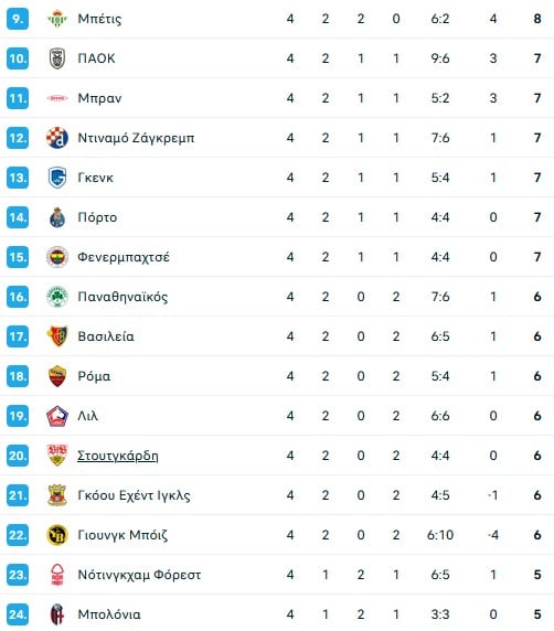 Με 4 βαθμούς διεκδικεί είσοδο στα μπαράζ (θέσεις 9 έως 24) με καθοριστικό το αποψινό ματς. Ακολουθεί εντός έδρας ματς με τον Ερυθρό Αστέρα (11/12), το εκτός με την Φέγενορντ (22/1) και το εντός με την Μπραν (29/1).