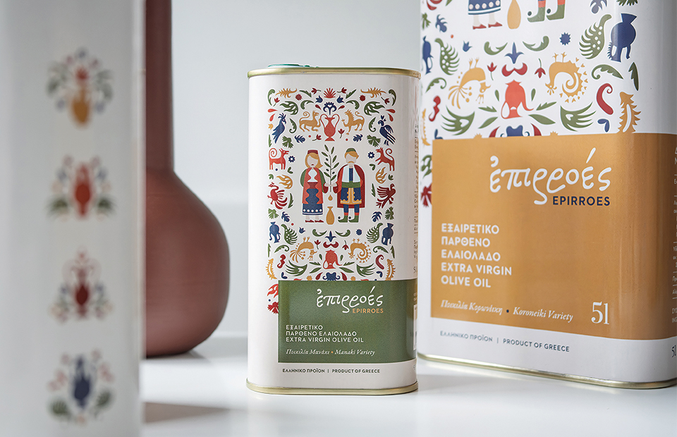 Με ελαιώνες στη Μεσσηνία και την Αρκαδία, το ελαιόλαδο Επιρροές είναι το αποτέλεσµα µιας µακραίωνης οικογενειακής παράδοσης, συνδυασµένης µε τη σύγχρονη αντίληψη της φυσικής καλλιέργειας. Στη Φαρακλάδα Τριφυλίας, όπου φυτεύτηκαν οι πρώτες Κορωνέικες ελιές στα τέλη του 19ου αιώνα, η φροντίδα των ελαιώνων συνεχίζεται αδιάκοπα, επί τρεις γενιές, από τον Γιάννη και την Πολυξένη το 1947 έως τη σηµερινή οικογένεια της Νατάσας Αναγνωστο¹ούλου, που επιβλέπει µε αγάπη κάθε στάδιο της παραγωγής. Στην ορεινή Αρκαδία, στην Κανδήλα, το ήπιο µικροκλίµα και το υψόµετρο των 750-850 µ. των ελαιώνων που ανήκουν στον Μάνο Ευσταθίου, σύζυγο της Νατάσας, χαρίζουν στο βραβευµένο Επιρροές τη χαρακτηριστική φρεσκάδα και πολυπλοκότητα του καρπού. Η ετικέτα, που δηµιουργήθηκε το 2024 , περιλαµβάνει δύο µονοποικιλιακά έξτρα από Κορωνέικη και Μανάκι.