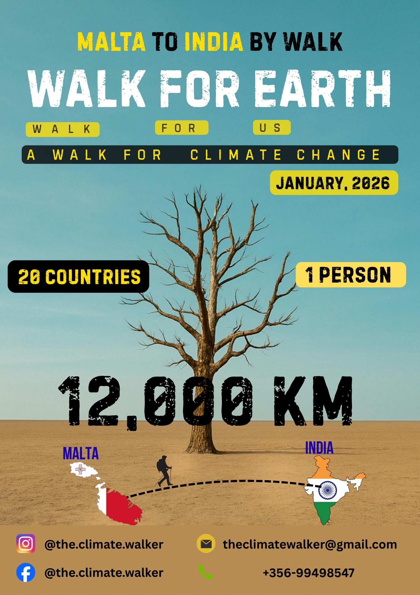 «Περπατώντας για το περιβάλλον» από Μάλτα ως Ινδία, ταξίδι 12.000 χιλιομέτρων για την κλιματική αλλαγή