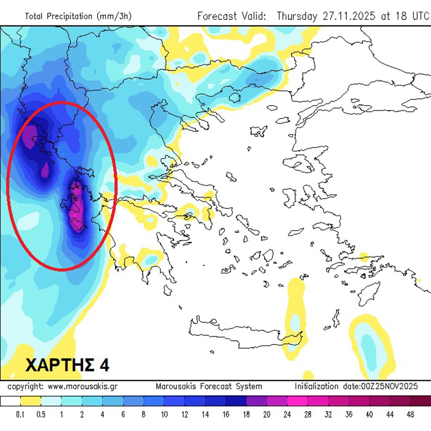 Την Πέμπτη (27/11) ισχυρές βροχές και καταιγίδες προβλέπονται: