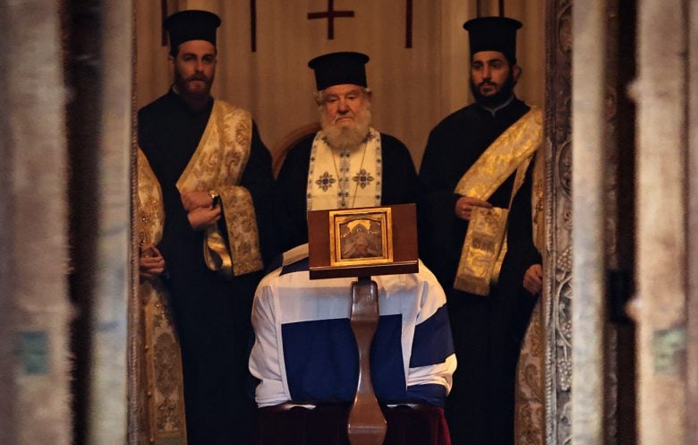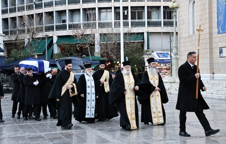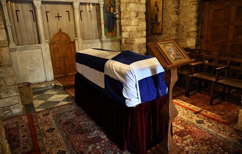 Σε λαϊκό προσκύνημα το φέρετρο, το οποίο είναι καλυμμένο με την ελληνική σημαία