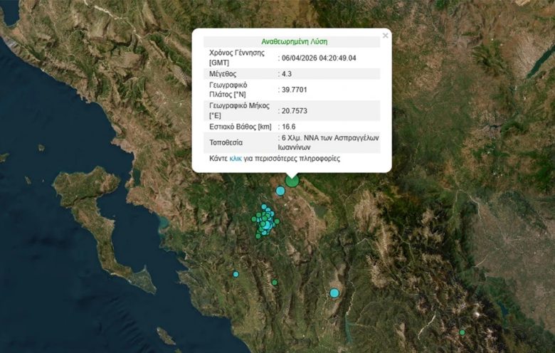Σεισμός 4,3 βαθμών της κλίμακας Ρίχτερ σημειώθηκε στις 7:20 σήμερα, Μεγάλη Δευτέρα στα Ιωάννινα και έγινε αισθητός στην ευρύτερη περιοχή, προκαλώντας ανησυχία στους κατοίκους.