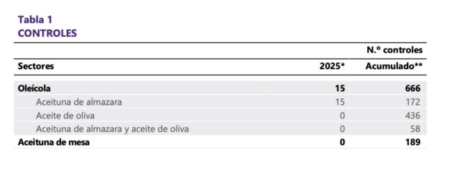 Από την ίδρυση της AICA το 2014 και μέχρι τις 31 Δεκεμβρίου 2025, το Υπουργείο Γεωργίας της Ισπανίας (MAPA) έχει επιβάλει συνολικά 4.947 παραβάσεις, εκ των οποίων οι περισσότερες αφορούν τον τομέα του ελαιολάδου με 365 για ελαιόλαδο, 213 για ελιές από ελαιοτριβεία και 149 για ελιές ελαιοποίησης.