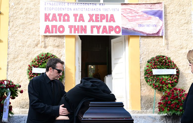 Η Όλγα Γεροβασίλη δίπλα στο φέρετρο