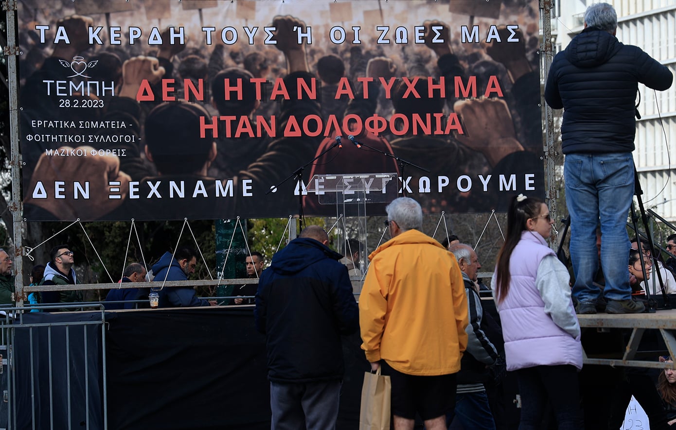 Σε εξέλιξη είναι συγκέντρωση στο Σύνταγμα για τα τρία χρόνια από το σιδηροδρομικό δυστύχημα στα Τέμπη που στοίχισε τη ζωή σε 57 ανθρώπους. Με κεντρικό σύνθημα «Τα κέρδη τους ή οι ζωές μας. Δεν ήταν ατύχημα, ήταν δολοφονία. Δεν ξεχνάμε, δεν συγχωρούμε» ο Σύλλογος Συγγενών Θυμάτων Τεμπών, εργατικά κέντρα, η ΑΔΕΔΥ, συνδικάτα, σωματεία εργαζομένων, φοιτητικοί σύλλογοι κι άλλοι φορείς έχουν συγκεντρωθεί στην Πλατεία Συντάγματος ζητώντας «πραγματική δικαίωση», ενόψει μάλιστα και της δίκης.