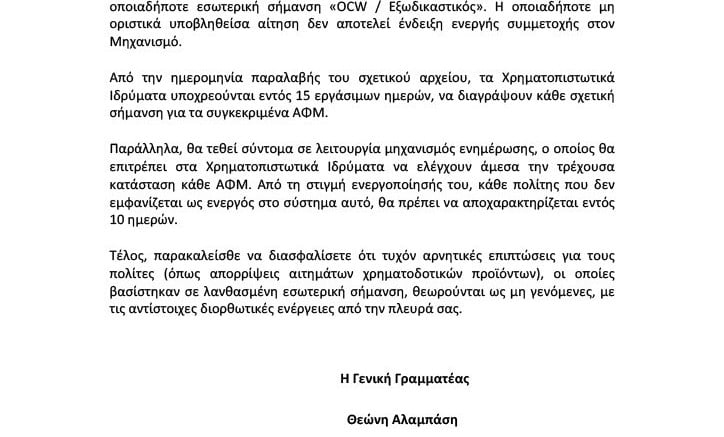 «Η πρακτική αυτή είναι εσφαλμένη, δεν συνάδει με το θεσμικό πλαίσιο και επιφέρει σοβαρή βλάβη στην πιστοληπτική εικόνα των πολιτών».