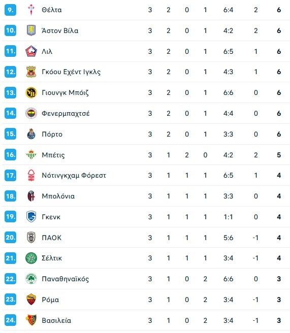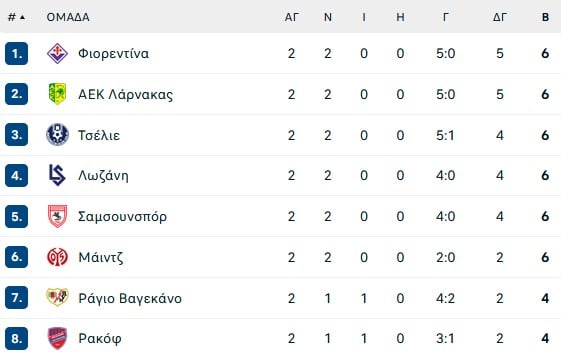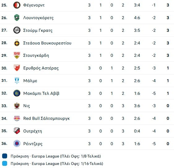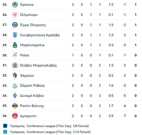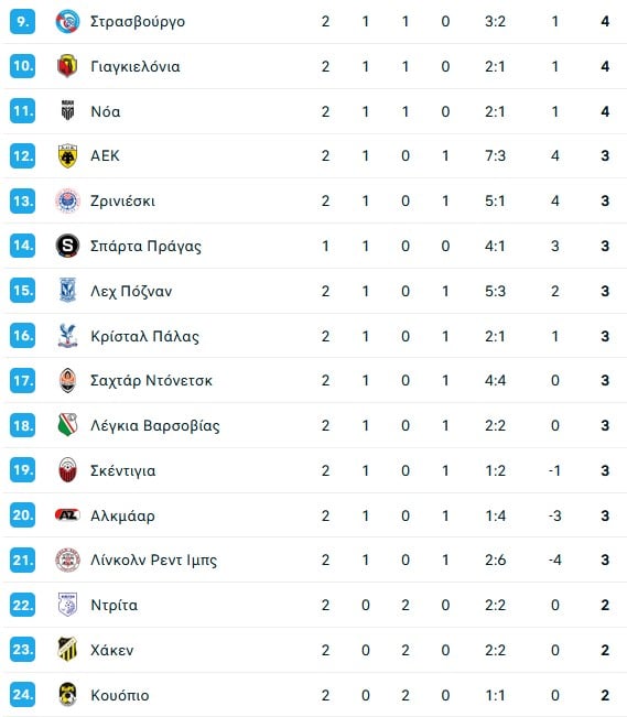 Υπάρχει και μια εκκρεμότητα. Ο αγώνας της Ριέκα με την Σπάρτα Πράγας διακόπηκε λόγω καταρρακτώδους βροχής. Θεωρητικά πρέπει να γίνει την Παρασκευή καιρού και γηπέδου επιτρέποντος.