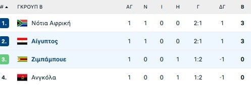 Δευτέρα 22 Δεκεμβρίου 2025, Αγαδίρ: Αίγυπτος – Ζιμπάμπουε 2-1