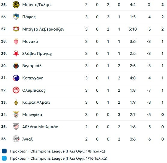 Θέσεις 1-8, απευθείας πρόκριση στους «16»