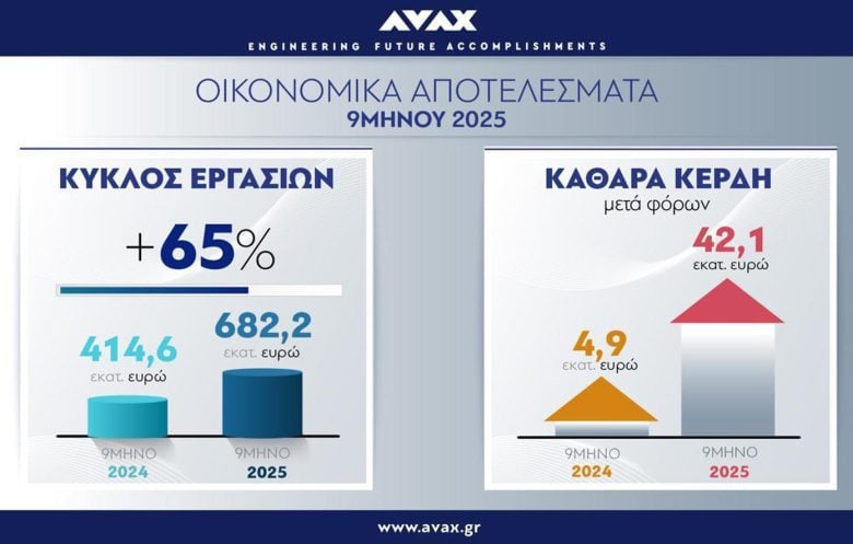 Στα 682 εκατ. ευρώ με αύξηση 65% ο κύκλος εργασιών το 9μηνο του 2025