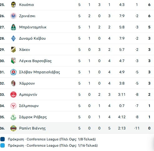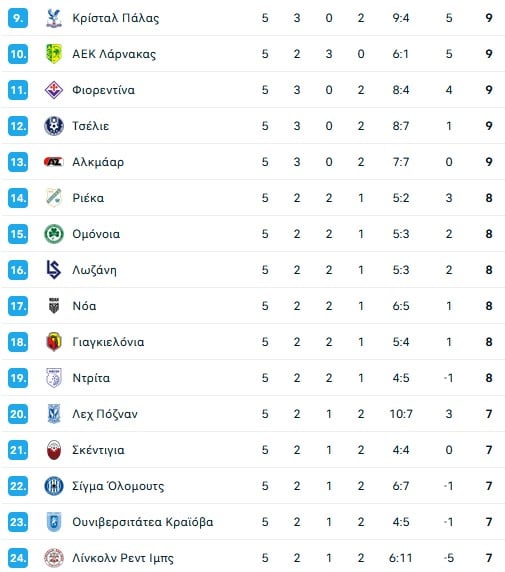 Conference League: Η θέση της ΑΕΚ στη βαθμολογία, αλλά και των Κυπριακών ΑΕΚ Λάρνακας και Ομόνοιας